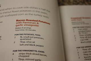 To add to the overall dinner, I cracked open my new “Cuisine Holiday Menus” magazine for a good, hearty Bacon Roasted Potatoes with Parm and Garlic Vinaigrette recipe. Boy howdy, it was to die for.